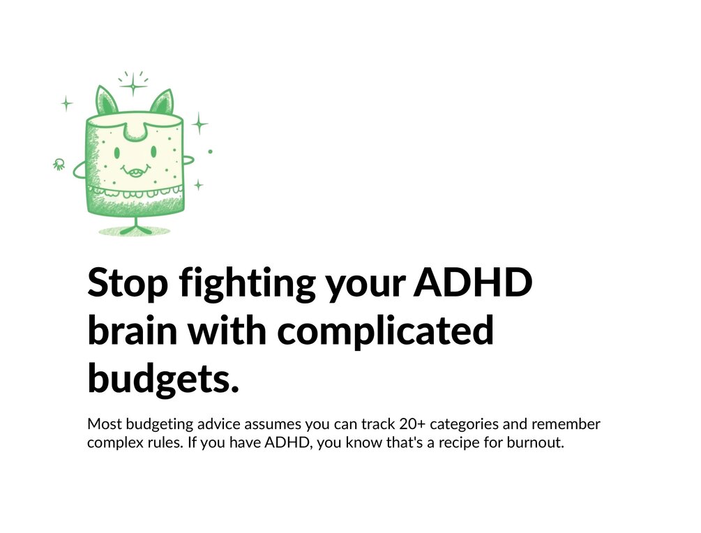 Most budgeting advice assumes you can track 20+ categories and remember complex rules. If you have ADHD, you know that's a recipe for burnout.